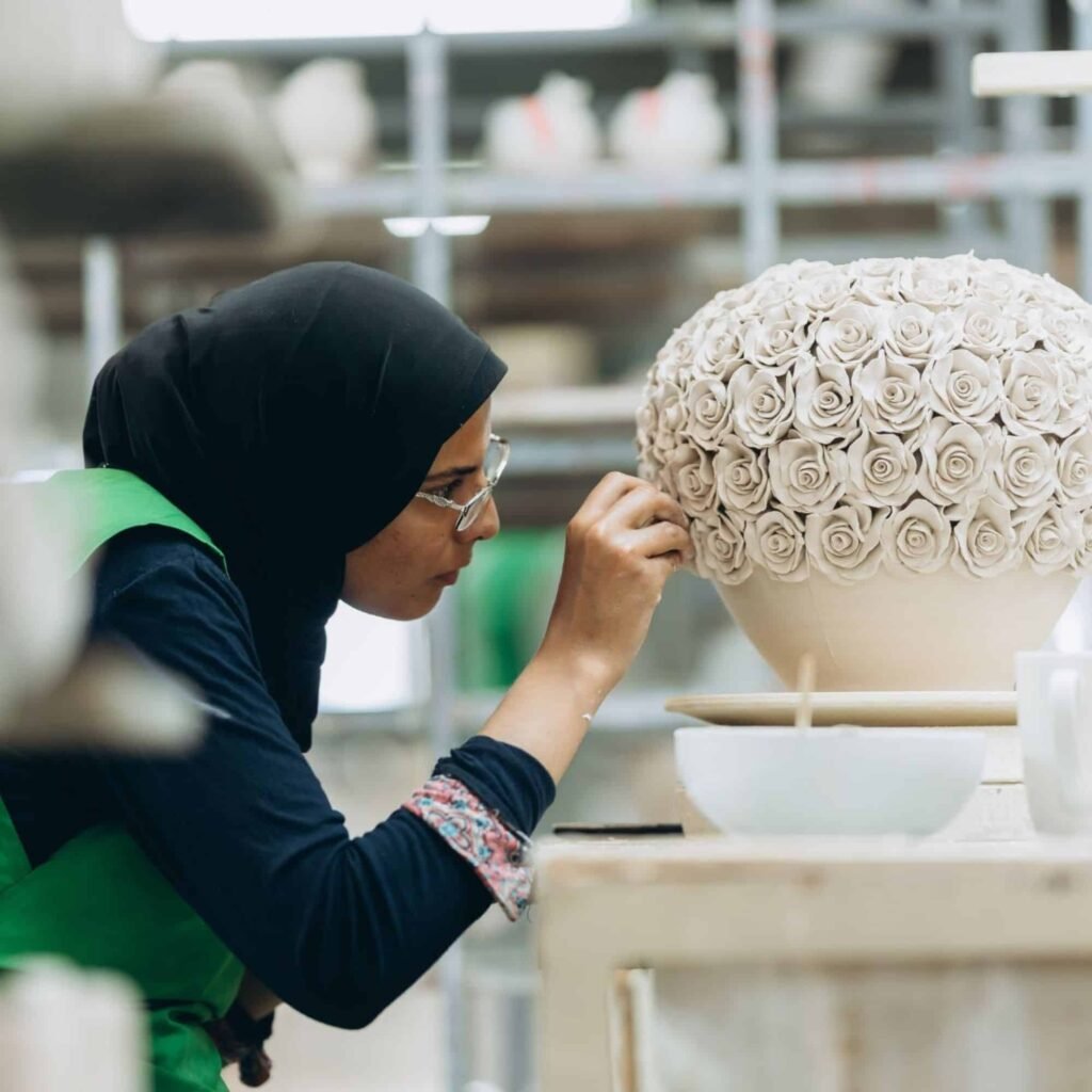 Integrating tradition with innovation, Fathy Mahmoud is able to meet large-scale global demand while maintaining exceptional quality. With a team of over 4,000 skilled artisans and professionals, we pride ourselves on creating porcelain that merges the precision of advanced German engineering with skilled local craftsmanship.