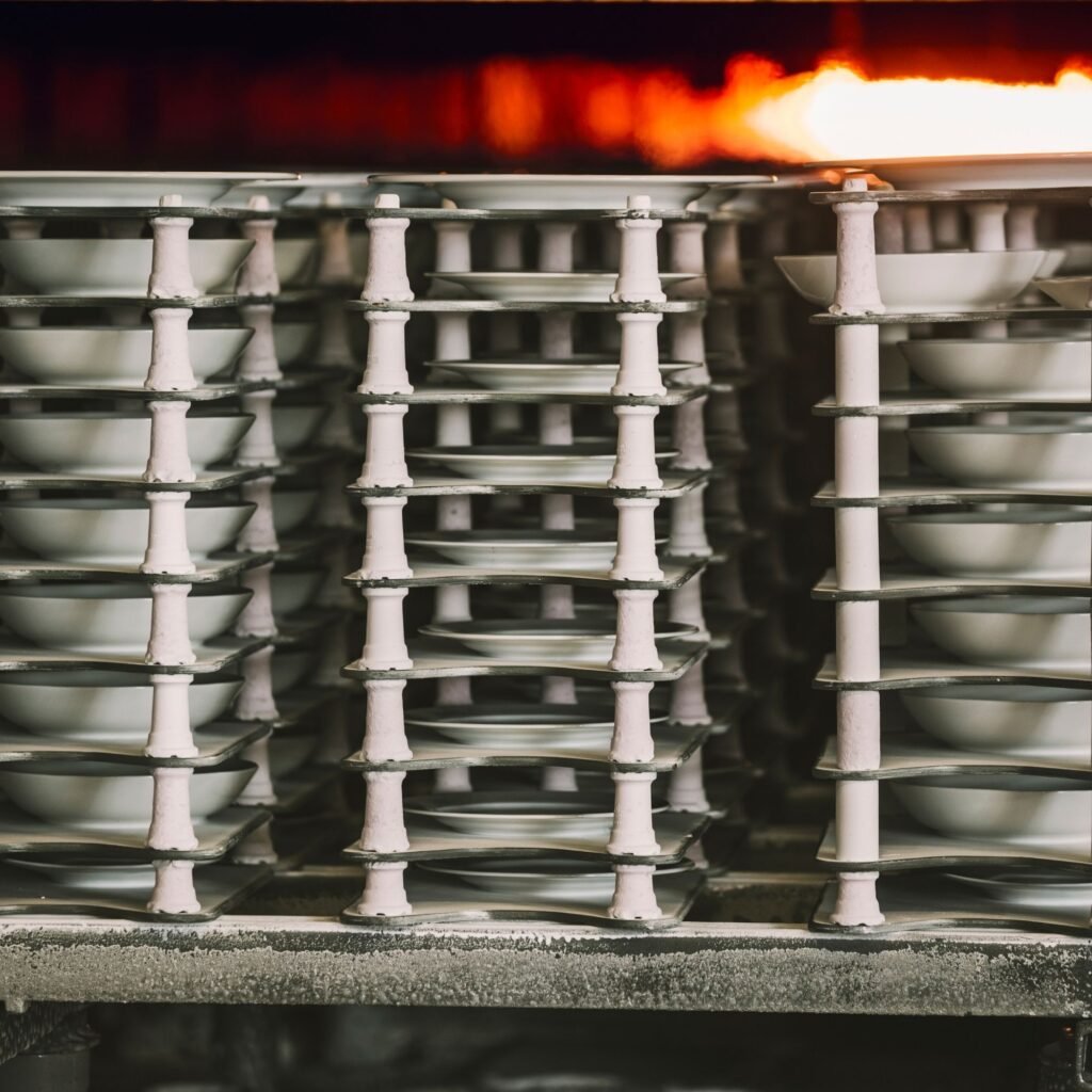 At Fathy Mahmoud, we use advanced German kiln technology and a double-firing process—biscuit and glaze—at over 1320°C to produce durable, bright white porcelain with a brilliant finish.